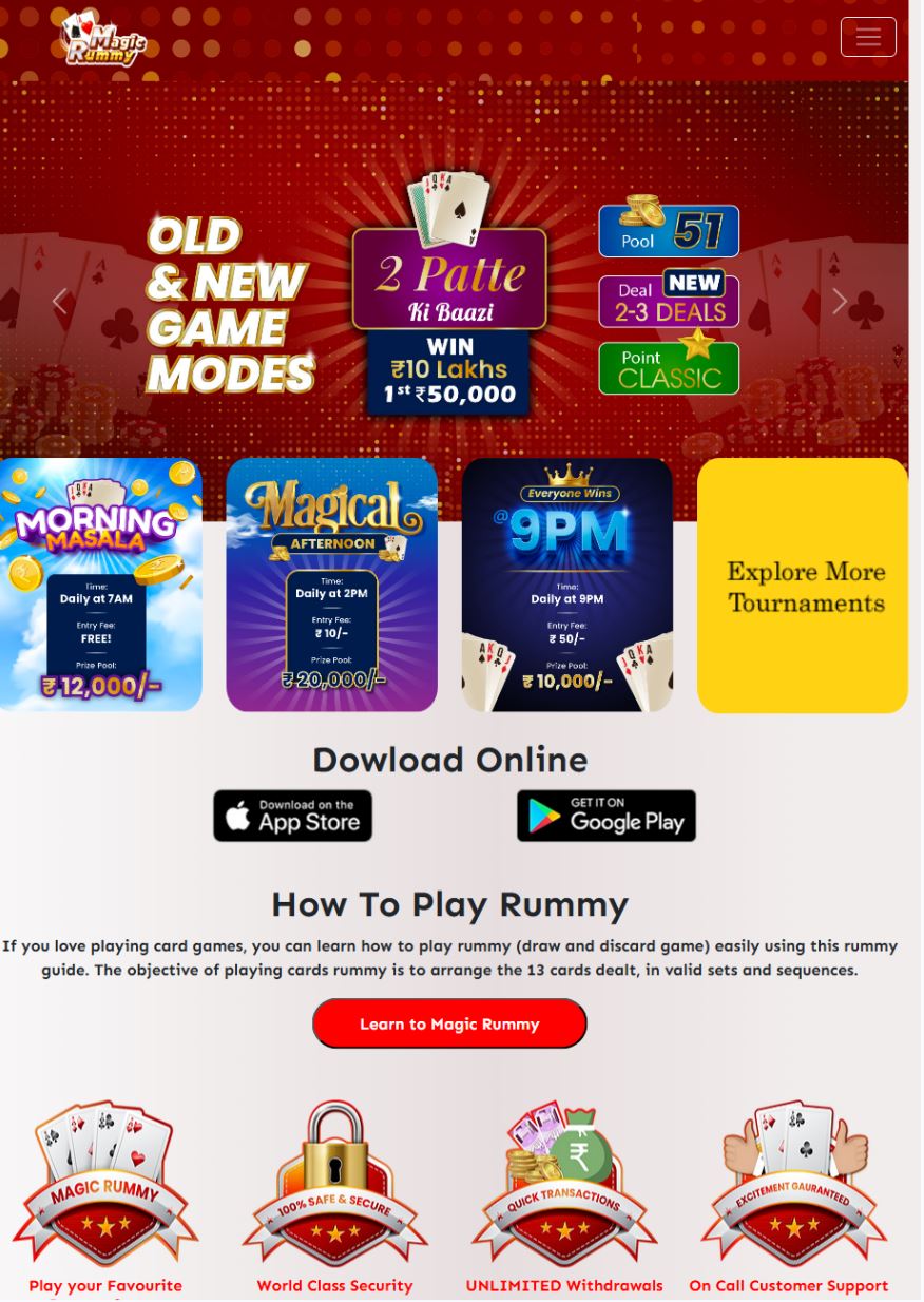 Magic Rummy gives India access to a massive mix of sports and casino entertainment. Worldwide contests and homegrown hits, high odds, extensive markets, and dynamic Live action!